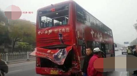 昨天6點多,在中環(huán)線育紅路由鐵東路去往紅星路方向,一輛載滿水泥的水泥攪拌車在行駛過程中突然之間撞上前方的一輛48路雙層公交車,導(dǎo)致公交車上多人受傷。