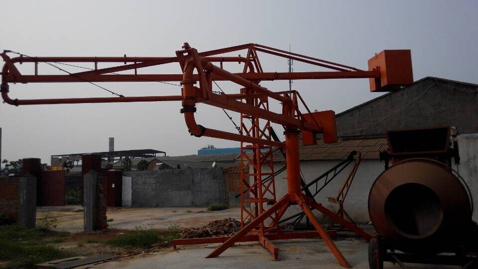 河南金源布料機(jī)桿采用回轉(zhuǎn),臂架式布料結(jié)構(gòu),配用125MM輸送管,360度回轉(zhuǎn),整機(jī)手動(dòng)操作。具有結(jié)構(gòu)簡(jiǎn)單,強(qiáng)度、剛性可靠,操作簡(jiǎn)單,靈活,維修方便等特點(diǎn),與混凝土泵配套使用可廣泛的應(yīng)用于民用與工業(yè)建筑的混凝土澆注工程中。