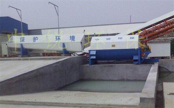 該系統(tǒng)主要由:攪拌車加水清洗裝置,溜槽輸送裝置,砂石漿水分離裝置,和泥漿水后處理裝置組成?;炷凛斔驮O(shè)備清洗后,將殘余混凝土排入溜槽中,在高壓水流沖擊下,經(jīng)溜槽進入砂石分離機,在不斷旋轉(zhuǎn)的分離機作用下,對混凝土進行充分的清洗,同時將砂、石進行分離,分離后的砂、石在導(dǎo)料葉片的作用下背向流動,再通過提升式出料口排出分離機,分別堆放。清洗后的漿水從分離機的底部排出進入沉淀池逐級沉淀后循環(huán)使用或進入攪拌池回收利用。進入攪拌池(一般情況2個攪拌池)的漿水為了防止沉淀凝固,需通過攪拌器的作用,攪拌器的工作為間歇式。分離出水泥漿在連續(xù)的攪拌器作用下,再通過高壓污水泵輸送到攪拌樓中待生產(chǎn)計量再利用。整個控制系統(tǒng)設(shè)有手動和自動控制,方便控制設(shè)置,整個系統(tǒng)運行可靠,故障率低,維護量少等特點。