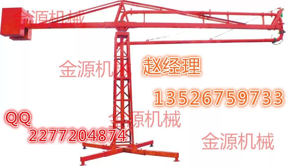 結(jié)構(gòu):、插銷、立架、構(gòu)成的底座是固定部分,其上通過回轉(zhuǎn)支承與上部回轉(zhuǎn)部分相連,上主梁架、平衡臂、平衡臂架拉桿、上橫桿組成后回轉(zhuǎn)部分。立管上有回轉(zhuǎn)卡篐接頭。通過人力拉動(dòng),可使整個(gè)回轉(zhuǎn)部分回轉(zhuǎn)360度。上梁主架前端連接有一個(gè)回轉(zhuǎn)支座與前橫桿、前拉桿組成前回轉(zhuǎn)部分,在人力拉動(dòng)下可繞回轉(zhuǎn)支座旋轉(zhuǎn)300度。由兩部分回轉(zhuǎn)架組成的合成運(yùn)動(dòng)就能覆蓋所有布料半徑范圍的布料點(diǎn)。