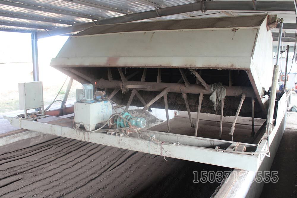 1.槽式翻拋機翻堆跨度可以達到4-12米,發(fā)酵周期15天左右。發(fā)酵槽長度視情況而定??梢悦刻爝M料口投料,另一頭出料。每天投料,每天出料加工。當翻拋機翻拋完成需換翻拋段時,可升起攪龍將設備快速運行至翻拋段。