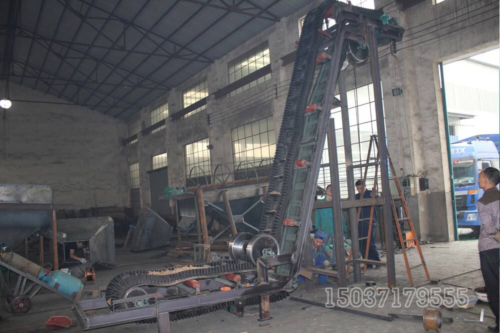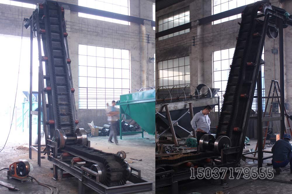 大傾角皮帶輸送機(jī)具有通用帶式輸送機(jī)結(jié)構(gòu)簡(jiǎn)單,運(yùn)行可靠,維修方便等優(yōu)點(diǎn),并具有大傾角輸送、結(jié)構(gòu)緊湊、占地少等特點(diǎn),因而是大傾角輸送和垂直提升物料的理想設(shè)備。大傾角皮帶輸送機(jī)是有機(jī)肥生產(chǎn)的主要設(shè)備,在有機(jī)肥的生產(chǎn)中原料以及成品的垂直提升就需要大傾角皮帶輸送機(jī)來(lái)完成。