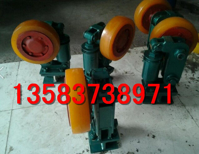 滾輪罐耳裝置 滾輪罐耳 罐耳滾輪導向裝置 L250滾輪罐耳 L300滾輪罐耳滾輪罐耳(又名滾輪導向裝置)是提升容器(罐籠或箕斗)的組成部分,它起導向和緩沖作用。是確保提升容器沿導軌平穩(wěn)運行的關鍵所在。一,主要機構及特點:滾輪罐耳主要由輪軸、支架、緩沖裝置、底座等組成。二,主要特點:輪軸采用橡膠密封語機械密封相結合的組合密封方式,膠圈采用高耐磨材料,安全可靠,壽命長。1.支架擺動銷軸裝有高分子耐磨軸套,使用中不產生松動現(xiàn)象。2.緩沖裝置采用符合彈性體緩沖結構,性能穩(wěn)定,免維護。3.可用緩沖裝置來方便的調整滾輪與罐道間的位置。4.表面防范采用鍍鋅刷漆新工藝,防腐防銹性能好。三、其他說明滾輪罐耳由中間布置一個,左右側各一個組成一組滾輪罐耳可根據(jù)用戶要求進行設計