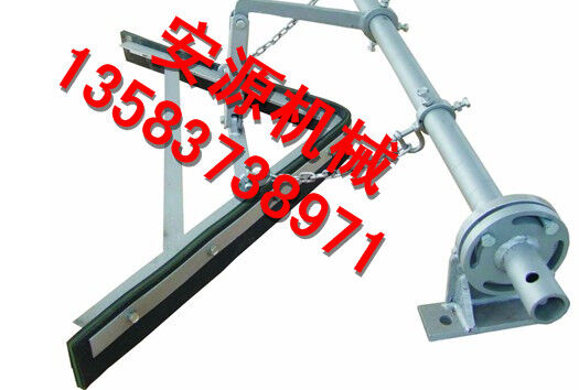 在正機(jī)安裝時,首先確定好安裝位置,將前吊桿焊在清掃器三角板上,再將橫粱焊在機(jī)架上,前吊桿調(diào)正螺絲頂在橫梁上,調(diào)正刮板與膠帶距離,后吊環(huán)角鐵焊在機(jī)架槽綱下面,吊著清掃器尾部,自動調(diào)正清掃器