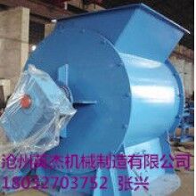 回轉(zhuǎn)卸料器的結(jié)構(gòu)是回轉(zhuǎn)葉輪、殼體、驅(qū)動裝置等,回轉(zhuǎn)葉輪上都焊有耐磨板從而提高了葉輪的使用壽命;回轉(zhuǎn)卸料器的入料口中心距和殼體中心線有一定的偏差,是為了適用于顆粒較大的物料的進入。 回轉(zhuǎn)卸料器的殼體內(nèi)襯大都裝有抗磨層;葉輪是由兩端軸承支承,可以保證葉輪和殼體之間的間隙均勻;由于入料溫度較高,葉輪與殼體之間留有相應的間隙。兩端密封是用石棉盤根密封、方式簡單、密封性好,容易操作及更換。
