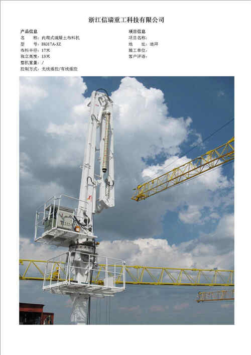 歸屬行業(yè):信瑞重工HG24A-3R樓面內(nèi)爬混凝土布料機(jī)