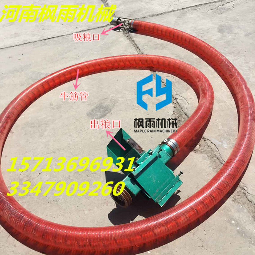 新型吸糧機,新型軟管吸糧機,在原有的基礎(chǔ)上改進了螺旋片加厚,不易斷,機頭機尾采用噴塑工藝,電機改為滑板式工藝,拆卸方便,省時省工,輕松搞定,軟管采用耐寒管,握不斷,壽命長,機尾為錐形設(shè)計,插入糧堆更方便,功率采用3kw,更有效的輸送糧食