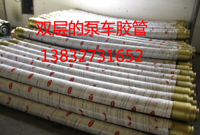 泵車膠管是雙層鋼絲的,有時候也稱作雙層膠管,四層膠管主要用在樁機上,耐磨性能更好,價格也要貴一些。
