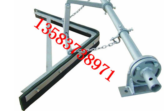 在正機安裝時,首先確定好安裝位置,將前吊桿焊在清掃器三角板上,再將橫粱焊在機架上,前吊桿調正螺絲頂在橫梁上,調正刮板與膠帶距離,后吊環(huán)角鐵焊在機架槽綱下面,吊著清掃器尾部,自動調正清掃器