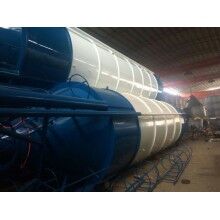 水泥倉(水泥罐)為圓柱形結構,底部由四條圓管支腿支撐整個倉體,整倉全部為鋼結構形式,焊接而成;頂部設有除塵器及壓力安全閥。