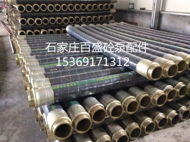 特點:。高壓混凝土泵膠管,4層鋼絲,內層加厚,高壓,高耐磨,長壽命,防脫皮,防掉頭泵車膠管,混凝土泵膠管,樁機膠管,混凝土輸送泵膠管。通用于混凝土輸送泵膠管,泵車膠管,樁機膠管,正常使用不低于10000方。低壓混凝土輸送泵膠管,2層加粗鋼絲,常規(guī)內層耐磨橡膠,主要用于低壓混凝土泵尾端或泵車尾端膠管。正常使用不低于8000方。但是市場上偽劣混凝土泵膠管的使用壽命一般不會超過3000方,請客戶注意。