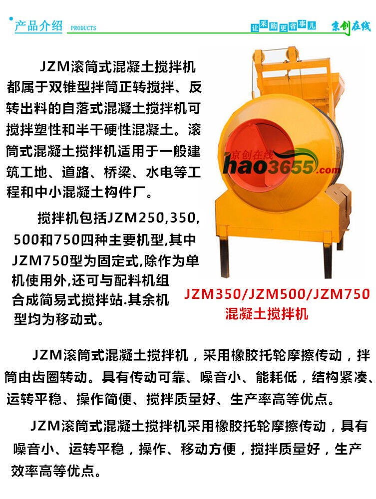 JZM350滾筒式混凝土攪拌機(jī) ,是一種帶有葉片的軸在圓筒或槽中旋轉(zhuǎn),將多種原料進(jìn)行攪拌混合,使之成為一種混合物或適宜稠度的機(jī)器。 攪拌機(jī)分為好多種,有強(qiáng)制式攪拌機(jī)、單臥軸攪拌機(jī)、雙臥軸攪拌機(jī)等等。注意事項(xiàng):攪拌機(jī)及自動供料機(jī),必須把里面清洗干凈,尤其是冬天,這樣能延長壽命。攪拌機(jī)即是混合機(jī),因?yàn)榛旌蠙C(jī)的通常作用就是混合攪拌各類干粉砂漿,故俗稱攪拌機(jī)。攪拌機(jī)包括JZC250,350,500和750四種主要機(jī)型,其中JZC750型為固定式,除作為單機(jī)使用外,還可與配料機(jī)組合成簡易式攪拌站.其余機(jī)型均為移動式。