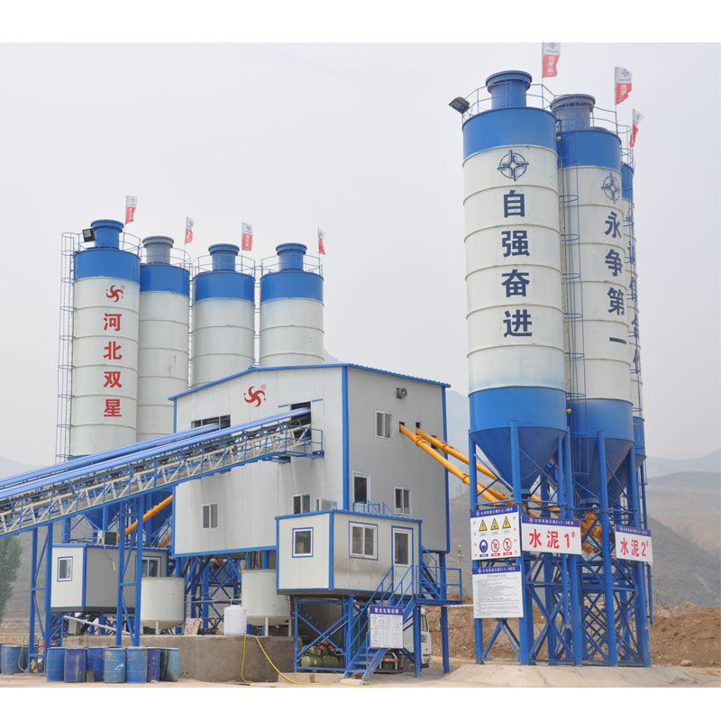 1.河北雙星HZS90混凝土攪拌站,該套混凝土攪拌站設(shè)備主機(jī)可配JS1500雙臥軸強(qiáng)制式混凝土攪拌機(jī)或進(jìn)口混凝土攪拌機(jī)。主機(jī)配有收塵機(jī),具有自動(dòng)收塵、去濕、排風(fēng)、將收集的粉塵向主機(jī)回送再利用的功能。收塵效果 極佳 。水泥倉頂裝有圓筒式收塵機(jī),除塵效率高、噪音低。主機(jī)架采用彩鋼板包裝,整潔、美觀、防塵,具有 良好的 視野。雙帖合并安裝,既方便操作又節(jié)約場(chǎng)地。
