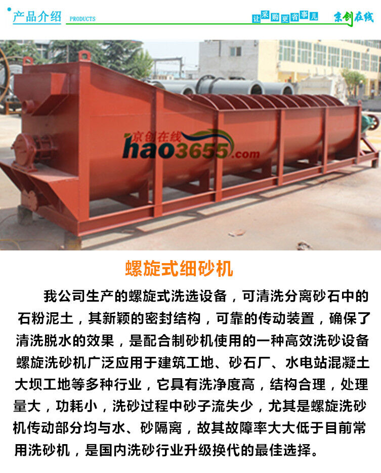 螺旋洗砂機(jī)FG系列適用于冶金、建材、水電等行業(yè)的洗選、分級(jí)、除雜等作業(yè),用于細(xì)粒度和粗粒度物料的洗選作業(yè)。對(duì)建筑用砂、筑路用砂石猶為適宜。螺旋砂石洗選機(jī)功率消耗小、洗凈度高。密封結(jié)構(gòu)好、全封閉傳動(dòng)裝置、可調(diào)式堰板,確保了產(chǎn)品高效、耐用,清洗、脫水效果好,細(xì)粒產(chǎn)品保持穩(wěn)定等特點(diǎn)。