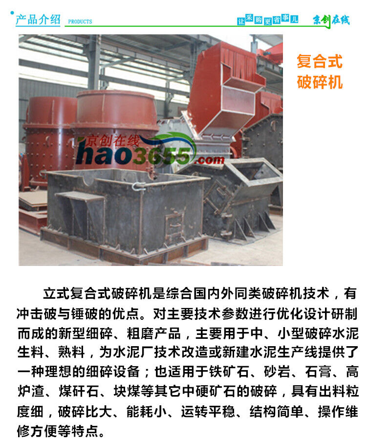 復(fù)合式破碎機(jī)800簡(jiǎn)稱為復(fù)合破,是破碎生產(chǎn)線和制砂生產(chǎn)線中常用設(shè)備之一。復(fù)合破碎機(jī)是一種無(wú)篩條、可調(diào)式細(xì)碎設(shè)備,可廣泛適用于水泥廠的生料、熟料細(xì)碎作業(yè),同時(shí)也可用于白云石、焦寶石、鉛鋅礦、蛇紋石、高爐渣、煤矸石、磷礦石等中等硬度物料的細(xì)碎作業(yè),特別適用于硬質(zhì)石灰?guī)r、白云巖、花崗巖、玄武巖等人工造砂或高速公路路面石料的加工破碎。