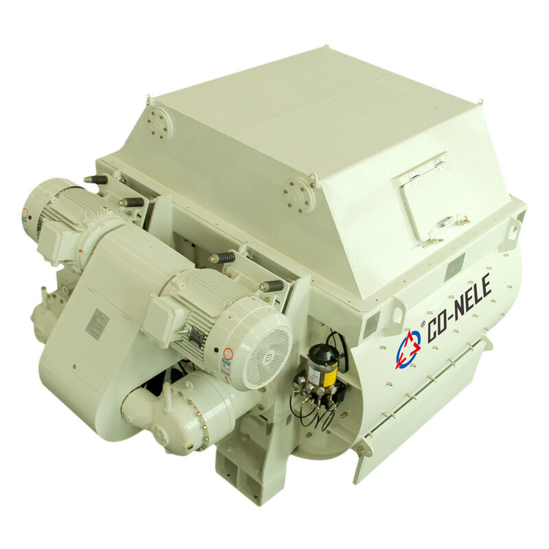 普通雙臥軸攪拌機的攪拌臂軸向及徑向均為流線型,攪拌過程中不僅對物料產(chǎn)生徑向切割作用,而且更有效的起軸向推動作用,使物料攪拌更劇烈,短時間達到混凝土的均質(zhì)狀態(tài),且由于攪拌裝置設(shè)計獨特,能提高了水泥的利用率。而具有專利設(shè)計的雙螺帶攪拌裝置,攪拌過程兩軸相向轉(zhuǎn)動,葉片產(chǎn)生的攪拌力,使攪拌進物料在保證劇烈徑向運動的同時,軸向推動加劇,物料在攪拌筒內(nèi)成沸騰狀態(tài)短時間內(nèi)劇烈而充分攪拌,攪拌效率提高10%~15%,其它結(jié)構(gòu)攪拌機與之相比甚遠。從而使攪拌形式更多樣化,根據(jù)不同的混凝土要求,使攪拌更均勻,效率更高。
