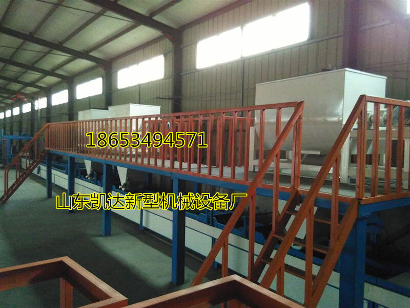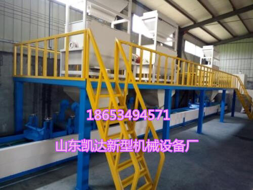 1、自動制板機;本機采用自動化多道輥壓、布網、鋪無紡布制板,一次成型,制板速度快,板材料光滑平整,規(guī)格任意調整,厚薄均勻,本機在砂漿狀態(tài)下,上下按順序布料布網,同機實現復合制作與EPS聚苯板或XPS擠塑板復合一次性成型,并在復合板里面形成砂漿網狀立體聯接結構。由于采用的技術先進,工藝獨特,不僅是生產效率成倍提高,制板成本大幅降低,而且極大的提高了保溫板的綜合質量,機械強度和面層的粘結牢度,從根本上克服了傳統(tǒng)聚苯板和擠塑板現場施工造成的重復勞動復雜工序、及粘結不牢固、施工成本高等缺點。