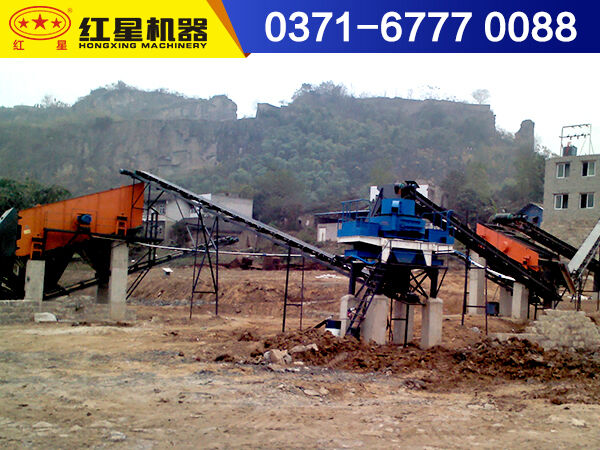 首先,大塊的煤矸石經振動給料機均勻的送入到顎式破碎機內進行粗碎加工,而后再經過反擊式破碎機進行細碎加工,破碎后的煤矸石經膠帶輸送機送到圓振動篩進行篩選,滿足制砂機進料要求的煤矸石送到制砂機中進行制砂處理,不滿足要求的重新返回反擊式破碎機再次破碎,制砂出來后的煤矸石經圓振動再次篩選,滿足要求的矸石砂進行清洗,而后送入到成品堆,不滿足要求的再次進行加工,直到滿足成品要求。