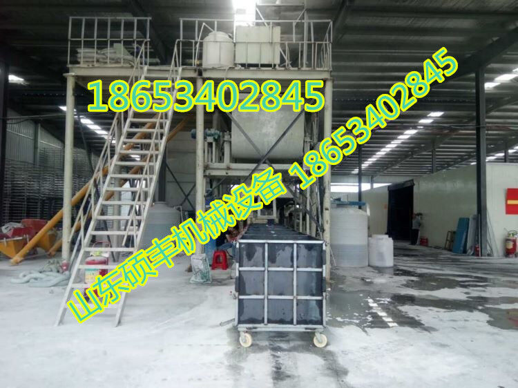 水泥基勻質(zhì)板設(shè)備產(chǎn)品先將減水劑加入水(水溫40℃左右)中,攪拌均勻約20秒,再加粉煤灰、水泥攪拌1分鐘,加樹脂膠攪拌一分鐘,加纖維、憎水粉、固化劑攪拌30秒(根據(jù)固化速度調(diào)整時間),入加引氣劑攪拌20秒后充入聚苯顆粒(氣泵打入泥漿底部)攪拌5-10秒鐘后(泡沫顆粒均勻) 裹漿)將料漿倒入模子中刮平。