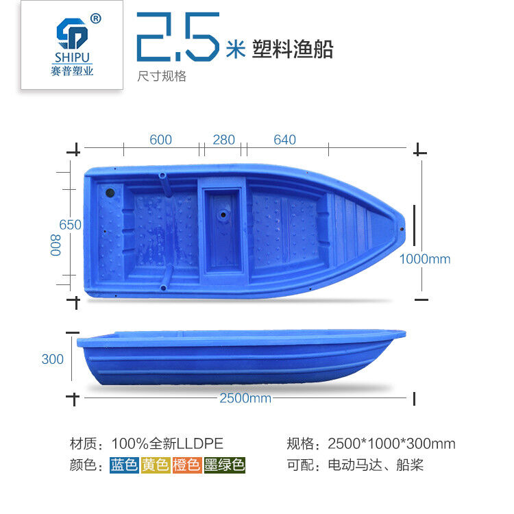 重慶賽普塑料捕魚(yú)船采用進(jìn)口韓國(guó)LLDPE材質(zhì),采用國(guó)外先進(jìn)的滾塑工藝整體加工制成。一次成型,無(wú)縫焊接。,成本低,穩(wěn)定性強(qiáng),抗撞擊,耐老化,無(wú)需維修。效果遠(yuǎn)超玻璃鋼漁船。使用年限長(zhǎng)達(dá)30年以上,是新一代的漁船。欲購(gòu)從速!13650528299(微信同號(hào))