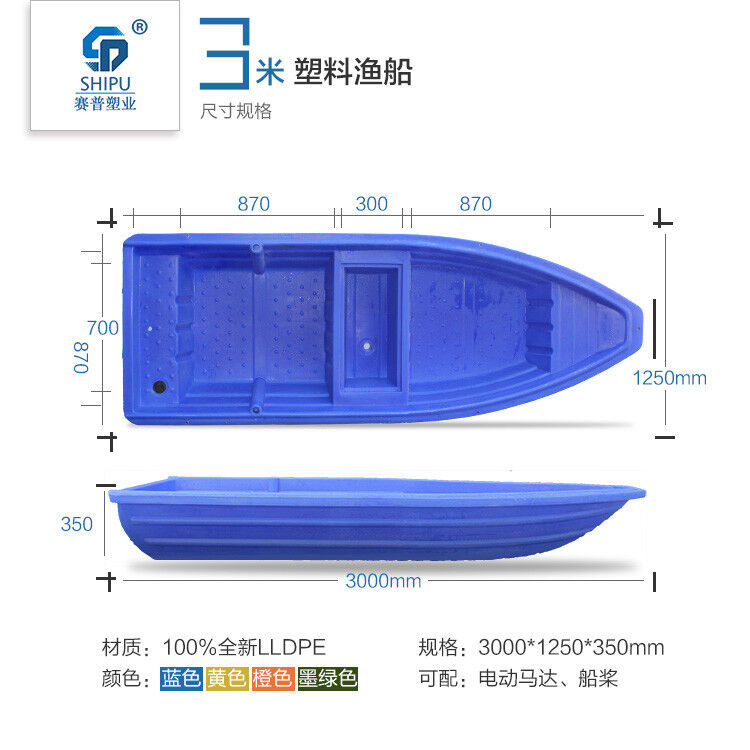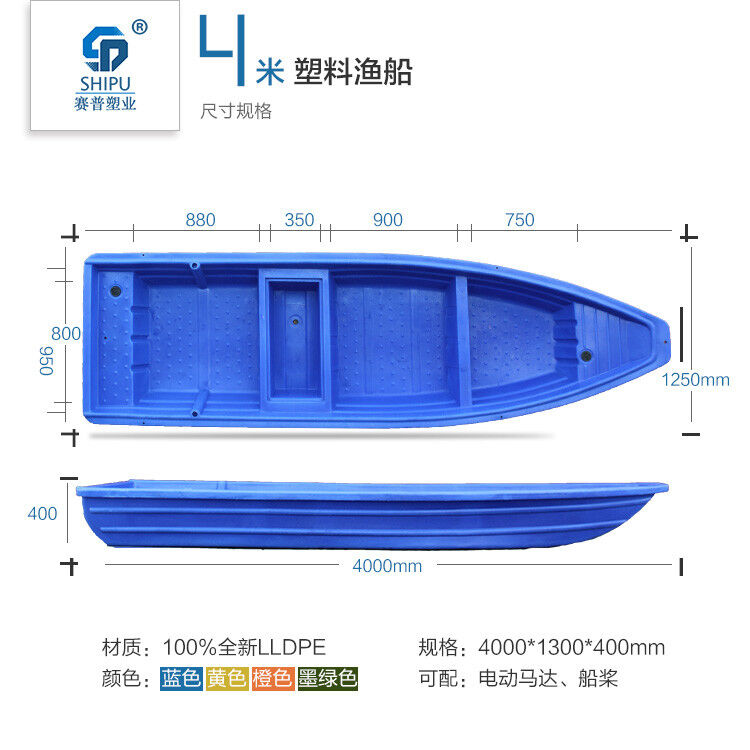 3.本公司專(zhuān)業(yè)生產(chǎn)的塑料漁船,是為水產(chǎn)養(yǎng)殖戶量身定做的,采用進(jìn)口韓國(guó)LLDPE材質(zhì),具有很強(qiáng)的抗老化性,保證船的使用壽命在20年以上。一次成型,無(wú)縫焊接。顏色可改。船身都是雙層的質(zhì)量更好浮力更大 目前所有的塑料船都打上了泡沫。