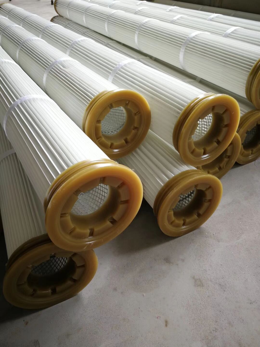 過濾精度可達(dá)到99.9%; 5.內(nèi)外護(hù)網(wǎng)與內(nèi)部濾料運(yùn)用國際先進(jìn)的自動(dòng)螺旋鑄膠機(jī)打膠固定技術(shù),確保濾筒的處理風(fēng)量、過濾面積均勻便于電磁脈沖閥反吹清灰;