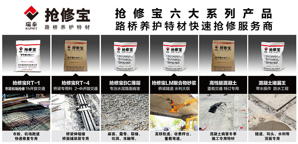 常規(guī)的混凝土快速修補(bǔ)劑,是由無機(jī)與有機(jī)高分子材料組成的一種快速修補(bǔ)材料,具有快硬、早強(qiáng)、抗?jié)B、抗裂、耐磨、耐久等特點(diǎn),較之普通混凝土,混凝土快速修補(bǔ)劑修補(bǔ)的路面粘結(jié)更牢固,修補(bǔ)過后的水泥路面沒有出現(xiàn)破損、裂縫、脫皮等剝離現(xiàn)象,抗壓強(qiáng)度和抗折強(qiáng)度更高,是混凝土路面病害修復(fù)材料的上等材料。與常規(guī)混凝土快速修補(bǔ)劑不同的是,西安瑞泰公司生產(chǎn)的水泥混凝土路面快速修補(bǔ)料搶修寶自主研發(fā)了一種獨(dú)特的修補(bǔ)產(chǎn)品和技術(shù),使得混凝土快速修補(bǔ)具有高柔性、高抗拉性,施工后2-4小時(shí)就可通車。因而短時(shí)間受到大量認(rèn)可,在全國各地道路搶修實(shí)施中廣泛發(fā)揮重要作用。廣泛應(yīng)用于高速公路、機(jī)場跑道、國道、省道、縣鄉(xiāng)公路、橋隧、加油站、工廠、小區(qū)、停車場、廠房、水壩、水電站等水泥路面病害問題的快速治理。