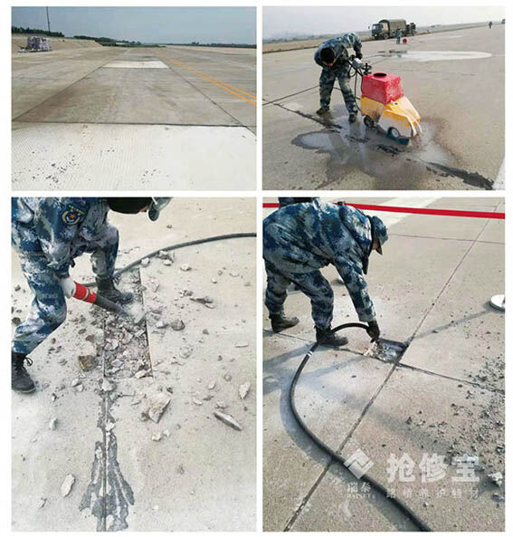【搶修寶】機(jī)場(chǎng)道面專用特材,專用于機(jī)場(chǎng)跑道、停機(jī)坪等快速修補(bǔ)及整體換板工程,通航時(shí)間快、1-2小時(shí)強(qiáng)度可達(dá)30MPA以上,強(qiáng)度高、耐磨性強(qiáng)、防腐蝕抗凍融性好,不受環(huán)境溫度限制,零下15度至高溫45度都可正常使用。