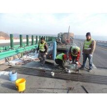 日本在修補(bǔ)伸縮縫時采用樹脂混凝土、超早強(qiáng)水泥,這種超早強(qiáng)復(fù)合材料養(yǎng)生時間較短,國內(nèi)這幾年來也在使用新型超早強(qiáng)復(fù)合水泥,自加水后2小時恢復(fù)交通。
