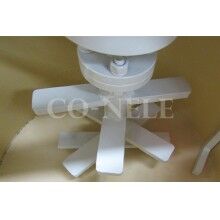 ◎在造粒過(guò)程中,造粒筒體以較低速度順時(shí)針旋轉(zhuǎn),造粒工具組高速逆時(shí)針旋轉(zhuǎn),旋轉(zhuǎn)的造粒筒體將物料輸送至造粒工具組運(yùn)動(dòng)軌跡內(nèi),同時(shí)固定安裝的刮刀打散物料流,在旋轉(zhuǎn)筒體、高速造粒工具以及固定刮刀的共同作用下,形成復(fù)雜的三維混合造粒物料流,實(shí)現(xiàn)物料的快速高質(zhì)量均化,同時(shí)完成制球造粒。