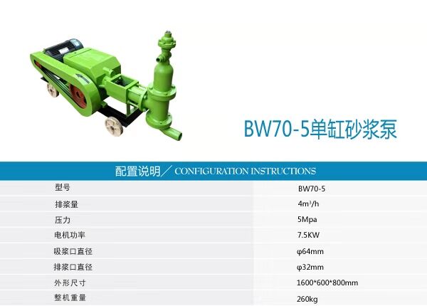 BW70-5型單缸砂漿泵技術參數(shù)
