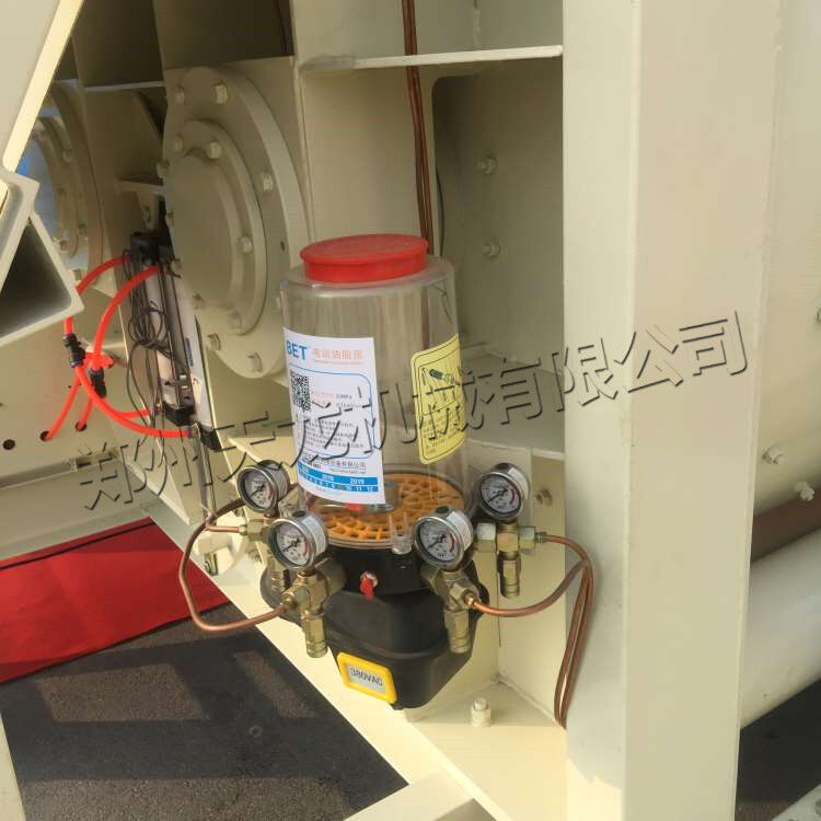 卸料門安裝在攪拌機底部,通過液壓實現(xiàn)啟動卸料。以及卸料門的開閉位置,通過調(diào)整密封的位置可保證卸料門密封。