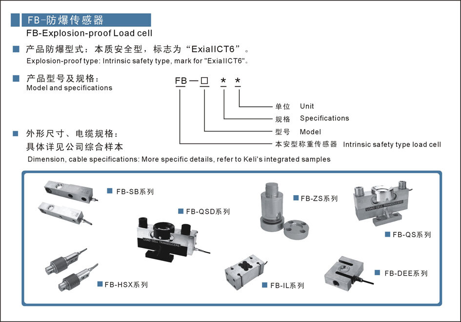 型號(hào):FB-HSX防爆型稱重傳感器 柯力傳感器
