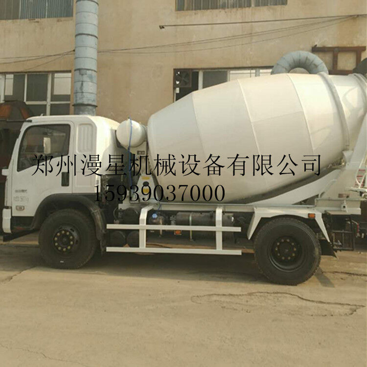 主要由攪拌筒及其輔助支撐部件組成。攪拌筒是混凝土的裝載容器,它是由薄鋼板制成,為了能夠自動裝、卸混凝土,其焊有形狀的螺旋葉片。轉(zhuǎn)動時混凝土沿葉片的螺旋方向運動,在不斷的提升和翻動過程中受到混合和攪拌。在進料及運輸過程中,攪拌筒正轉(zhuǎn),混凝土沿葉片向里運動,出料時,攪拌筒反轉(zhuǎn),混凝土沿著葉片向外卸出。攪拌筒的轉(zhuǎn)動則是靠液壓驅(qū)動裝置來保證。裝載量為3~6立方。的混凝土攪拌運輸車一般采用由汽車發(fā)動機通過動力輸出軸帶動液壓泵,再由高壓油推動液壓馬達驅(qū)動攪拌筒,裝載量為9~12立方的則由車載輔助柴油機帶動液壓泵驅(qū)動液壓馬達。葉片是攪拌裝置中的主要部件,損壞或嚴重磨損會導(dǎo)致混凝土攪拌不均勻。另外,葉片的角度如果設(shè)計不合理,還會使混凝土出現(xiàn)離析。