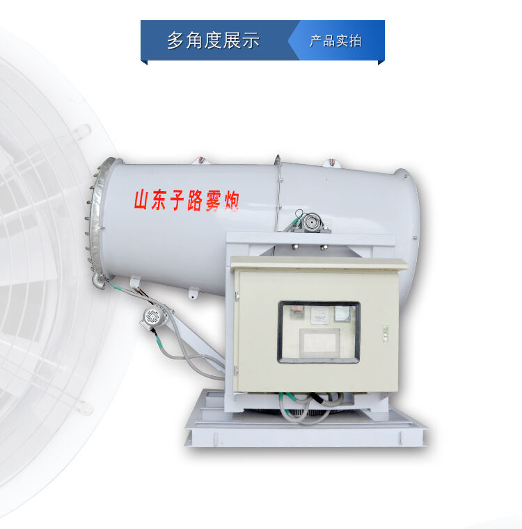 直徑相近的水霧和的粉塵顆粒黏貼,減小水表面的張力,使粉塵顆粒與水霧聚結(jié)成團,在重力作用下,然后沉降到地面。達到有效降塵的目的。霧炮機的噴水距離為30到150米,具體規(guī)格可以定制,配套水箱可選3-10噸,主要作用是噴霧抑塵,