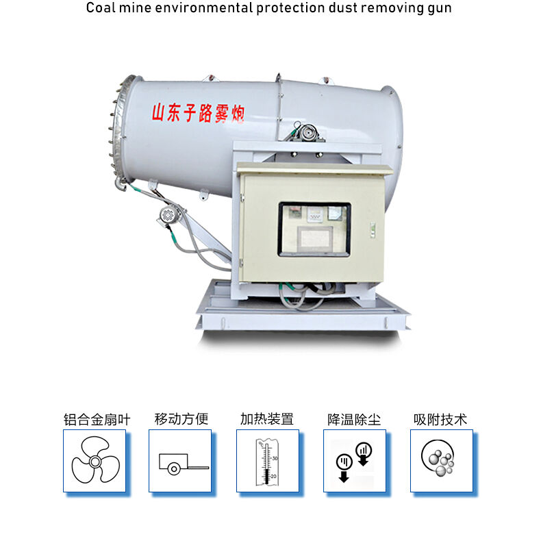 子路環(huán)??萍加邢薰疽豢钔ㄟ^高壓風(fēng)機(jī)將儲(chǔ)存的水壓縮成灰塵大小,在利用不銹鋼噴嘴部位將水霧化吹向高空凈化空氣的一種新型環(huán)保除塵產(chǎn)品。這款產(chǎn)品名字叫高射程霧炮機(jī),
