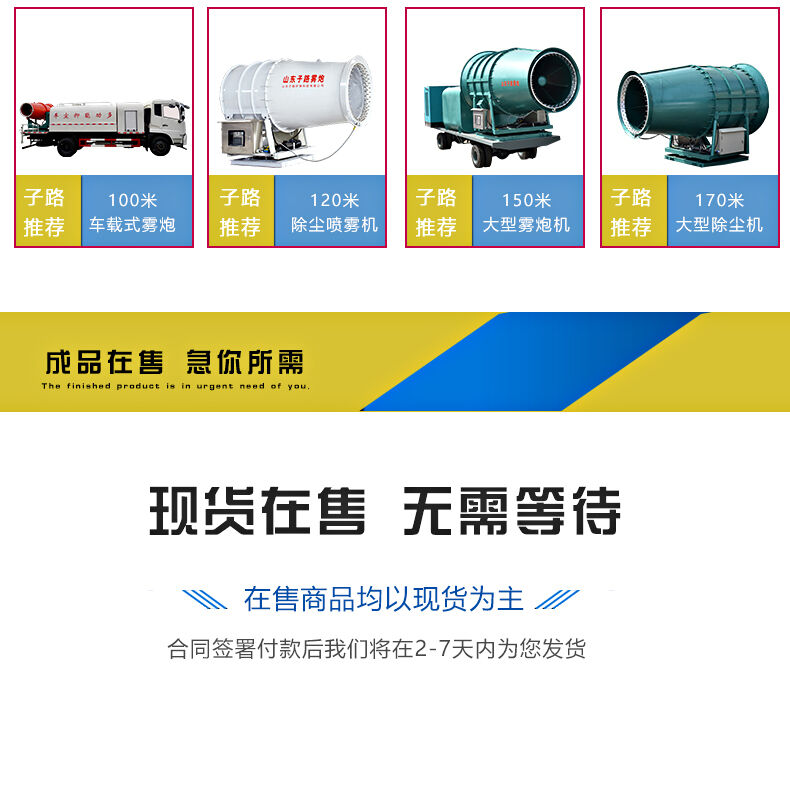 2.移動式霧炮機射程遠30米-150米射程的都有,除塵的覆蓋面積廣