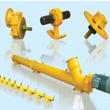 旋轉(zhuǎn)的螺旋葉片將物料推移而進(jìn)行螺旋輸送機(jī)輸送,使物料不與螺旋輸送機(jī)葉片一起旋轉(zhuǎn)的力是物料自身重量和螺旋輸送機(jī)機(jī)殼對(duì)物料的摩擦阻力。螺旋輸送機(jī)旋轉(zhuǎn)軸上焊的螺旋葉片,葉片的面型根據(jù)輸送物料的不同有實(shí)體面型、帶式面型、葉片面型等型式。螺旋輸送機(jī)的螺旋軸在物料運(yùn)動(dòng)方向的終端有止推軸承以隨物料給螺旋的軸向反力,在機(jī)長較長時(shí),應(yīng)加中間吊掛軸承。