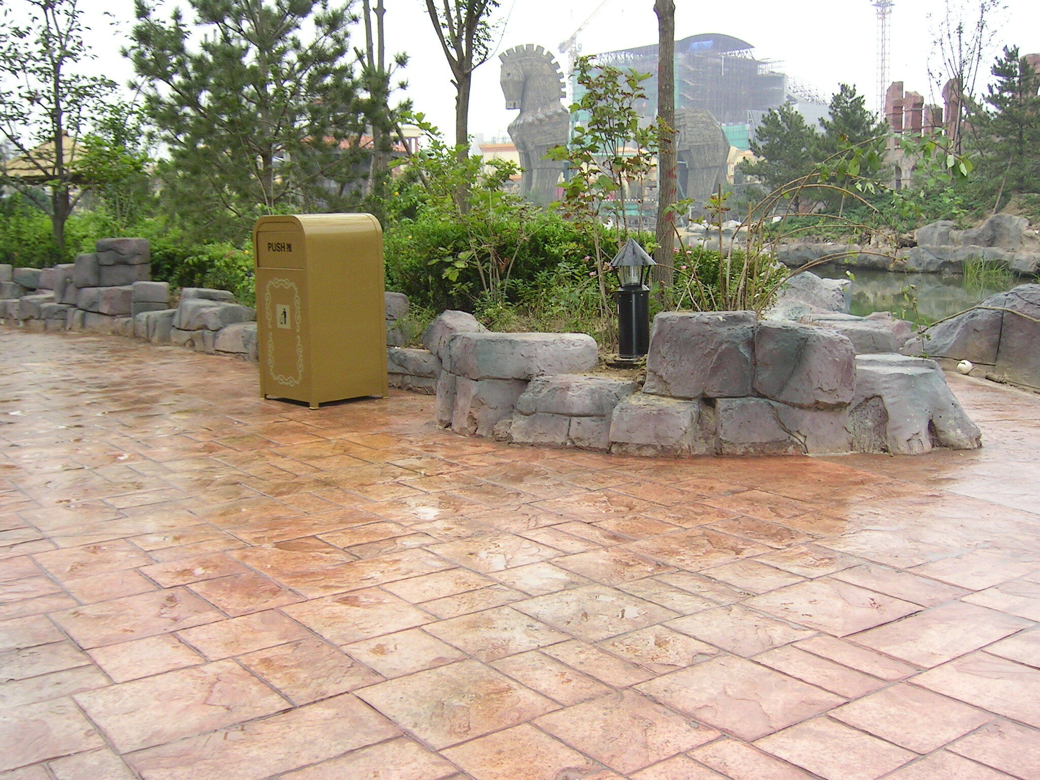 彩色壓模藝術(shù)地坪是一種新穎獨創(chuàng)的地面鋪裝體系??稍趥鹘y(tǒng)的砼材料上制作各種磚、石、木等其它材料無法達(dá)到的裝飾效果,具有圖形美觀自然、色彩豐富、質(zhì)地堅固耐用等特點,克服了傳統(tǒng)磚、石鋪設(shè)地面常有的容易松動、高低不平、縫隙長草、蟲蟻筑穴、容易起塵、路面整體性差、色彩單調(diào)、需經(jīng)常維修等特點,結(jié)合了傳統(tǒng)磚、石鋪設(shè)地面的美觀自然與砼的堅固耐用特點,是替代磚石鋪設(shè)路面的一種新型地面材料。