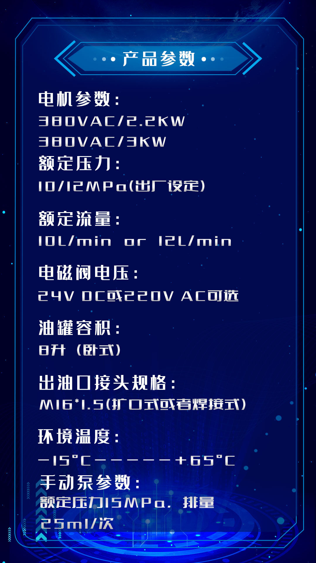 專(zhuān)門(mén)的手動(dòng)泵裝置,避免了設(shè)備由于停電等特殊情況而導(dǎo)致液壓油泵不能正常運(yùn)行所造成的損失。有臥式泵站和立式泵站選擇,配套液壓通用油缸使用。
