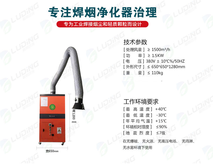 焊接煙塵又稱為電焊煙霧,是指焊接操作中經(jīng)常會(huì)產(chǎn)生一些有毒的物質(zhì)。如:乙醛、松香酸、異氰酸鹽、氮氧化物、硫化物、碳?xì)浠衔锏?。焊接煙塵是一種十分復(fù)雜的物質(zhì),lans已在煙塵中發(fā)現(xiàn)的元素多達(dá)20種以上,其中含量多的是Fe、Ca、Na等,其次是Si、Al、Mn、Ti、Cu等。焊接煙塵中的主要有害物質(zhì)為Fe2O3、SiO2、Mao、HF等,其中含量多的為Fe2O3,一般占煙塵總量的35.56 ,其次是SiO2,其含量占10~20 ,Mao占5~20 左右。
