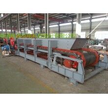 我公司研制的新型板式喂料機,結(jié)合皮帶輸送機和板式喂料機的優(yōu)點,能輸送含水率高的粘性物料,獨特的新型刮料裝置,能把粘在高強皮帶上的料自動清理下來,清理下來的物料掉到下道工序上。