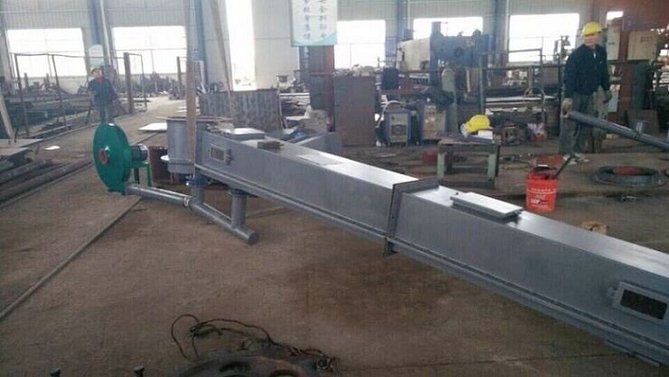 3、輸送斜度:斜槽的布置形式為沿著物料的輸送方向傾斜向下布置,斜度一般為4%~10%,應(yīng)盡量采用較大的斜度,可提高輸送效率。物料表面水分在0.6~0.8%時,建議選取10%的斜度。