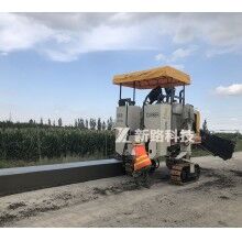 該設備采用三履帶行走驅動,水泥混凝土經(jīng)過輸料裝置,進入成型模具,然后通過振動棒振動和模具擠壓,一次攤鋪成型用戶需要的水泥結構物。通過更換模具及對車輛和模具狀態(tài)的精確調整和控制可以實現(xiàn)各類路緣石、硬路肩、防撞墻、公路中央分隔帶、水溝/匯水槽/排水槽、下水道及安全環(huán)島等不同輪廓水泥混凝土結構物的精準鋪筑。