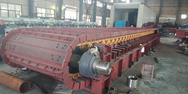 近年來, 對板式給料機的需求量不斷擴大, 除了作為給料機使用外, 逐漸也用來轉(zhuǎn)運物料。從幾年來的供貨及需求情況看, 除訂貨量增大外, 也要求長度增大,板式給料機長度已達30米以上, GBL中型長度也超過20米.因此, 整體式機架已不能滿足用戶要求, 可采用分段裝配式, 即分標(biāo)堆節(jié)非標(biāo)準(zhǔn)節(jié)頭節(jié)和尾節(jié), 這樣便于制造安裝和運輸,另外尾節(jié)部分應(yīng)配置受料漏斗.