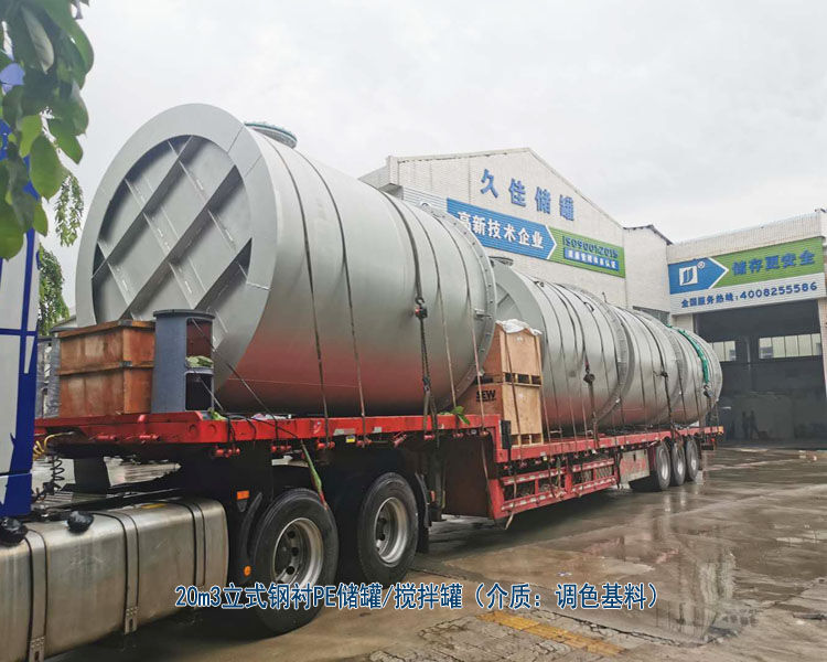此次生產(chǎn)調(diào)色基料鋼襯pe儲罐材質(zhì),而客戶又是涂料行業(yè)的大型品牌,對于各種要求嚴格,久佳防腐的工藝和技術(shù)能完全配合客戶需求。經(jīng)過了幾個月艱苦奮戰(zhàn),8臺“調(diào)色基料鋼襯pe儲罐”依次生產(chǎn)出來,經(jīng)過各種調(diào)試測試后,經(jīng)檢驗合格正式發(fā)貨?,F(xiàn)設(shè)備已到現(xiàn)場安裝調(diào)試,已正式投入使用。用戶對久佳防腐的精湛做工表示很滿意。