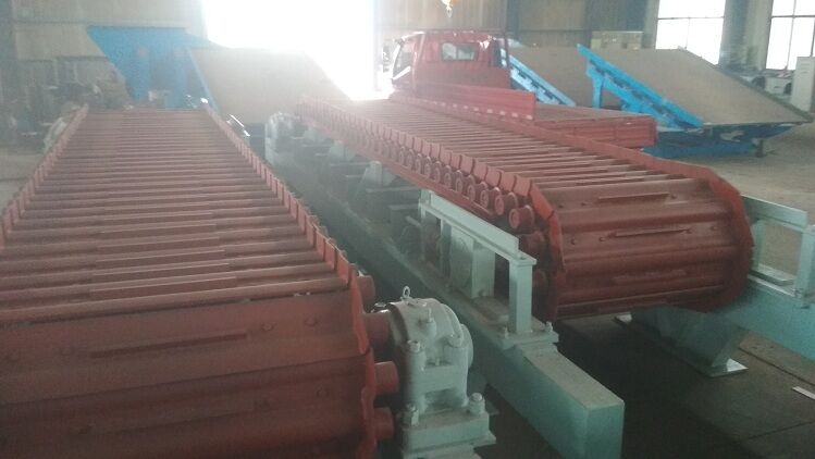 負荷鏈板材料選用優(yōu)質(zhì)合金鋼板沖壓而成。給料板式給料機每塊負荷鏈板上焊有折彎角鐵,既能滿足大傾角向上運送物料,又提高負荷鏈板的強度。在鏈板寬度較寬的情況下增加輔助支撐,該項結(jié)構(gòu)不但增加了鏈板的強度,而且使運輸過程更加平穩(wěn)可靠。拉料板式給料機為了增加鏈板表面的摩擦,防止物料打滑,在負荷鏈板上增加了一定數(shù)量的耙齒,對防止搭橋有一定的緩沖作用,保證了給料的均勻性。