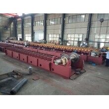 張緊裝置既是鏈板組件的張緊組件,又是改向軸組件的支承組件。它主要由座架及滑動(dòng)支承座組成,后部設(shè)能帶動(dòng)滑動(dòng)支承座前后移動(dòng)的調(diào)節(jié)桿,可對(duì)滑動(dòng)支承座前后調(diào)節(jié),以保持鏈軌合適的張緊度。