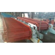 通過此次改造,與改造前相比設備部件損壞后更換更為方便。改造前更換部分鏈條較為困難,改造后輸送鏈條采用銷軸加穿銷的方式,便于拆解,可實現(xiàn)單節(jié)更換。行走輪單獨設置,不與頭輪接觸,不承載牽引力,其安裝于固定座,由螺桿固定,可實現(xiàn)單獨更換。在槽板中間部位安裝支重輪,承受部分物料倉物料重量,可提高槽板使用壽命。本次改造主要部件未進行更換,改造費用相對較少,改造取得較好效果。