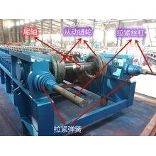 主要由從動軸、兩個從動鏈輪、軸承、軸承座,拉緊彈簧及拉緊螺桿等組成。鏈輪是通過漲緊套固定在軸上,軸的兩端裝有雙列調(diào)心滾子軸承和軸承座。軸承座裝在機(jī)架兩側(cè),并在滑軌之間前后滑動。